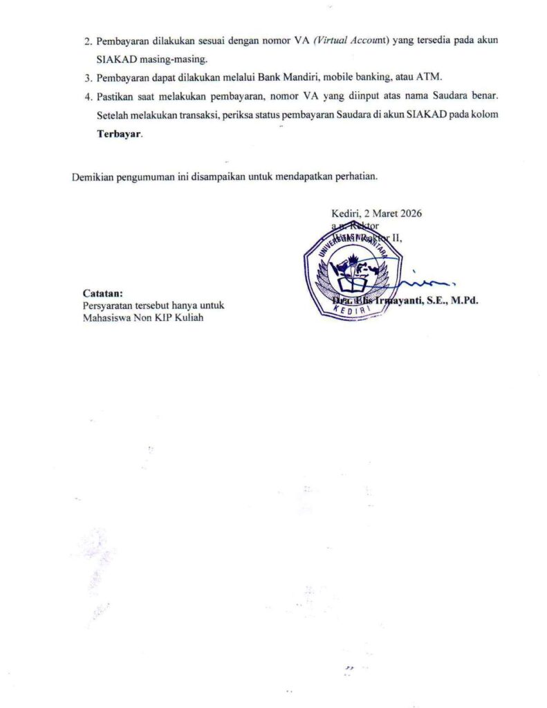 PEMBAYARAN BIAYA PERKULIAHAN SEMESTER GENAP TAHUN AKADEMIK 2025/2026