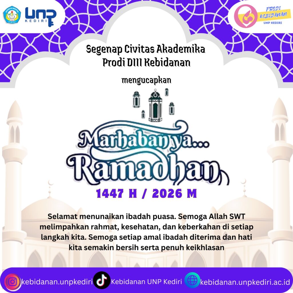 Segenap Civitas Akademika Prodi DIII Kebidanan Mengucapkan Marhaban Yaa Ramadhan 1447H/ 2026 M.Selamat menunaikan ibadah puasa. Semoga Allah SWT melimpahkan rahmat, kesehatan, dan keberkahan di setiap langkah kita. Semoga setiap amal ibadah diterima dan hati kita semakin bersih serta penuh keikhlasan